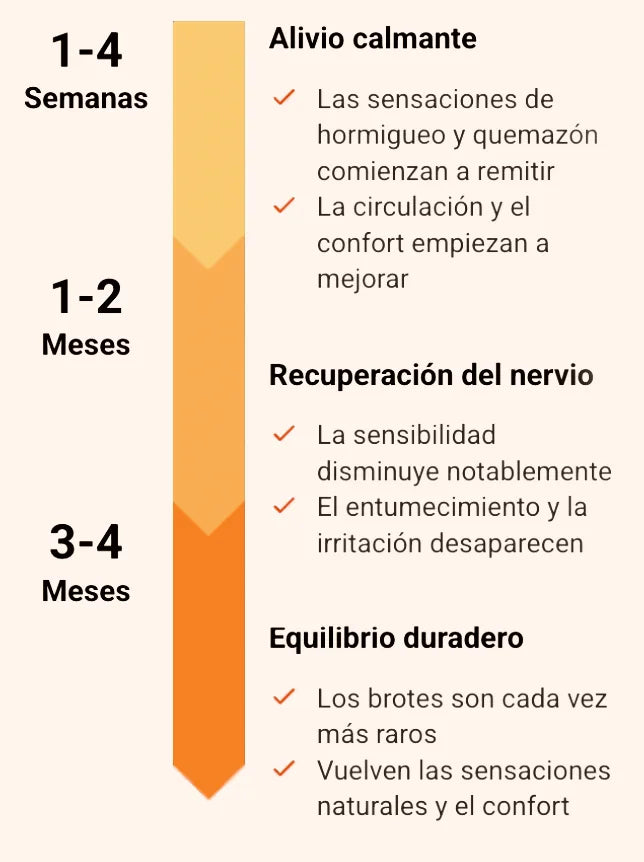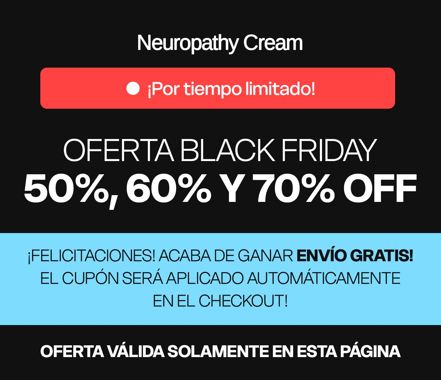 Sí. Neuropathy Cream™ está diseñado específicamente para calmar las terminaciones nerviosas irritadas y reducir los síntomas comunes de las molestias nerviosas, como el hormigueo, el ardor, el entumecimiento y la sensibilidad. También favorece la circulación y la reparación nerviosa, por lo que resulta eficaz para afecciones como la neuropatía, la irritación posterior a una lesión y el dolor nervioso diabético.